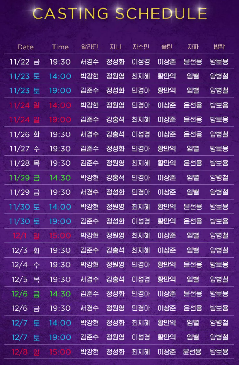 📌공연 일정별 캐스팅 스케줄