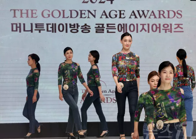 아래 사진은 2024 머니투데이 골든에이지어워즈에서 당당하게 무대를 꾸민 시니어 모델들의 모습입니다.