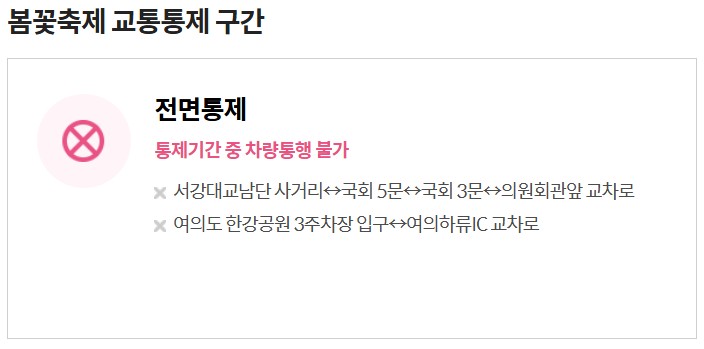 여의도 벚꽃축제 교통 통제 정보
