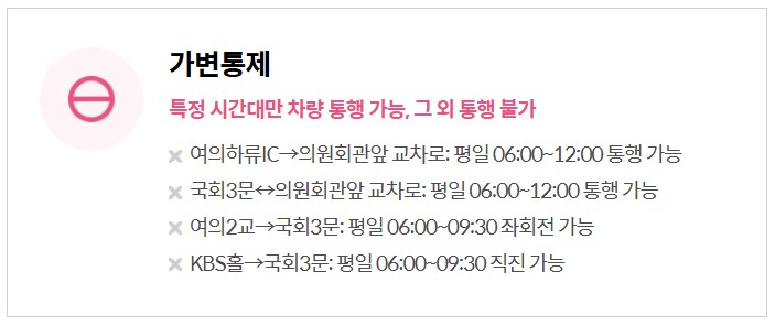 ※ 가변 통제 구간 및 시간은 공식 홈페이지 확인이 필요합니다.