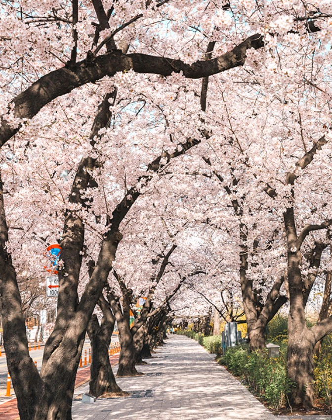 1,886그루의 벚나무가 꽃을 피우며, 그 꽃잎 하나하나가 우리의 마음을 고요하게 채워주는 느낌을 줍니다. 어느 방향을 봐도 꽃으로 가득 차 있어, 사진을 찍을 때마다 아름다운 풍경이 담겨 마치 봄의 한 페이지를 열어놓은 듯한 기분을 느낄 수 있습니다.
