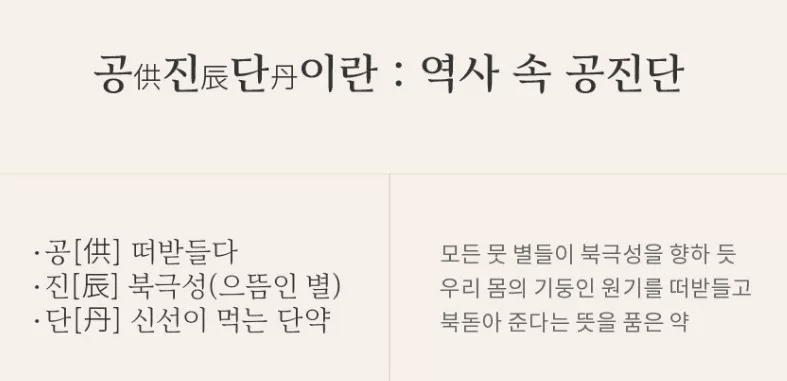 공진단은 동의보감에도 그 효능이 기록되어 있습니다. 동의보감에서는 공진단이 간허증에 특히 효과적이라고 설명합니다. 한의학에서 간허증이란, 간의 기능이 저하되어 나타나는 어지러움, 두통, 창백한 얼굴, 다리 저림, 눈의 피로 등과 같은 증상을 말합니다. 이 외에도 피로감, 불안감과 같은 심리적 증상까지 포함합니다.